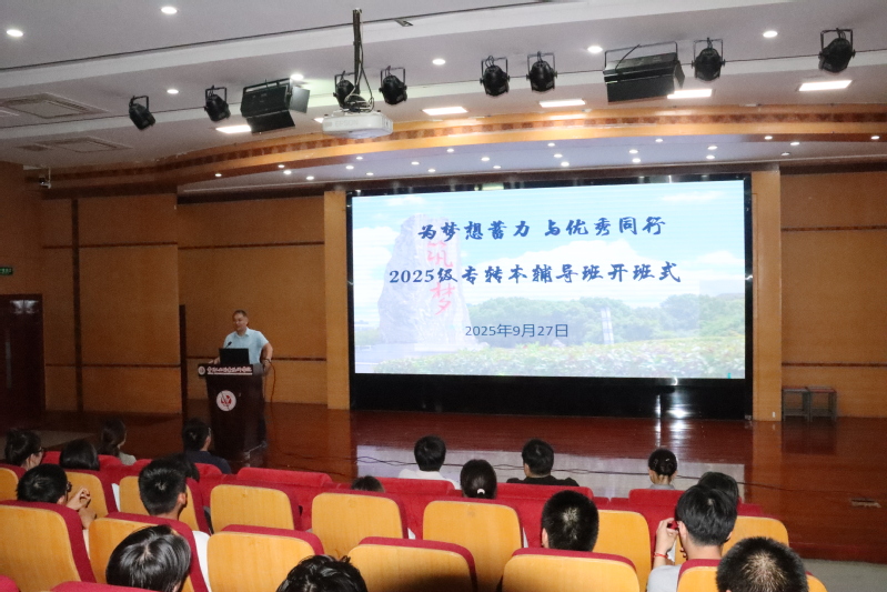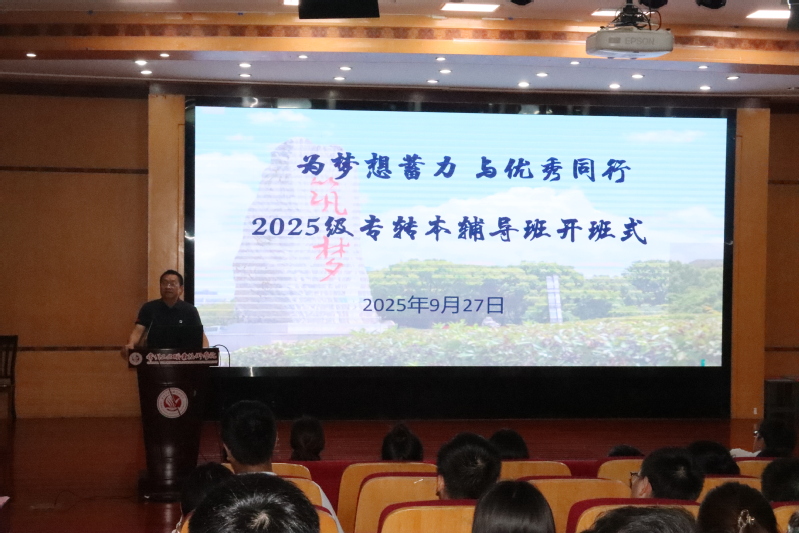 9月27日,以“为梦想蓄力 与优秀同行”为主题的2025级专转本辅导班开班仪式顺利举行。继续教育学院院长黄伟福、基础教学部主任费建明、副主任周娟、专转本辅导教师代表等出席开班仪式,基础教学部与体育工作部党总支书记江小丹主持开班式。报名学员踊跃参与,现场洋溢着积极向上、奋发进取的氛围。